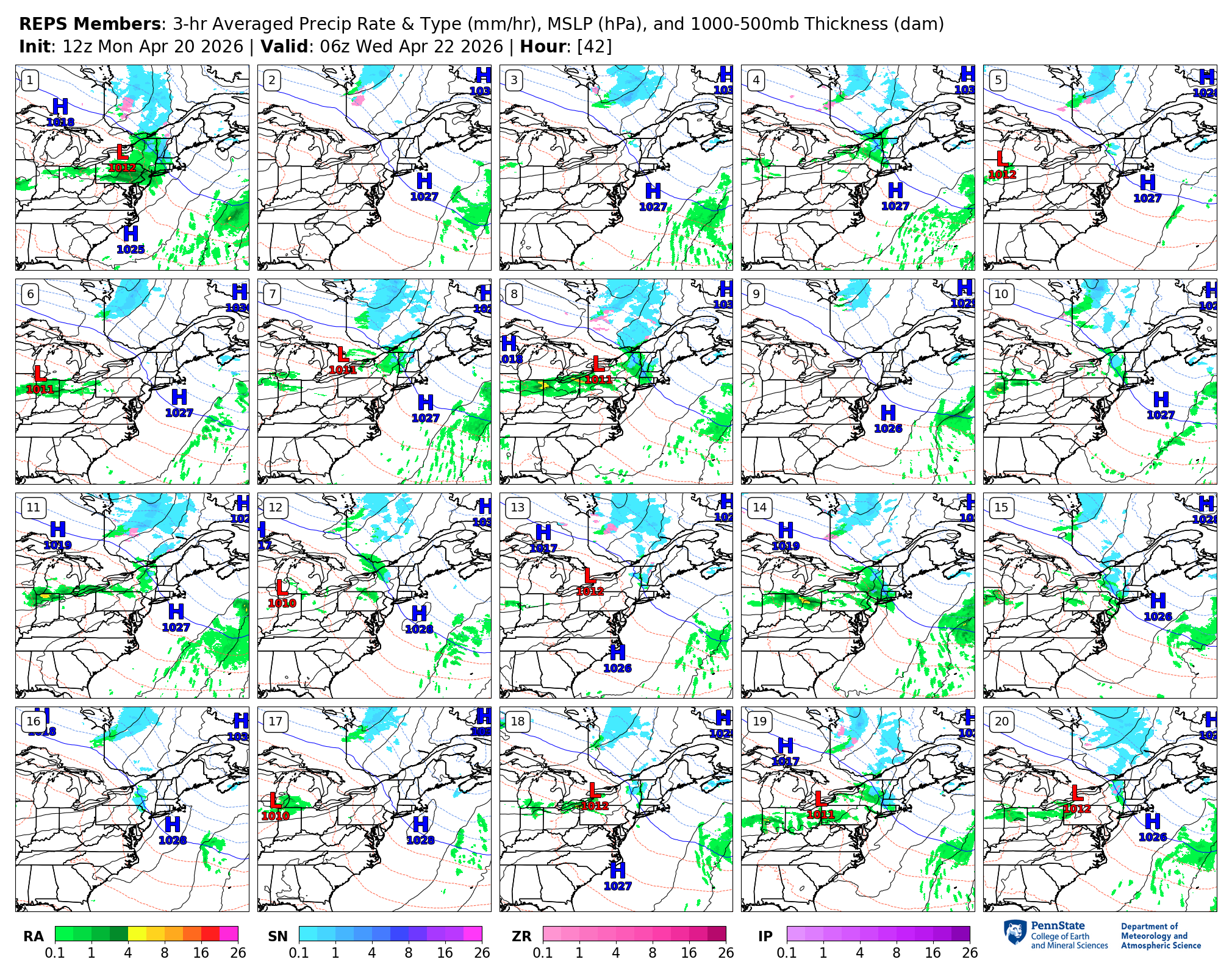 Postage stamp output for several ensembles, including the GEFS, AIGFS, and REPS.